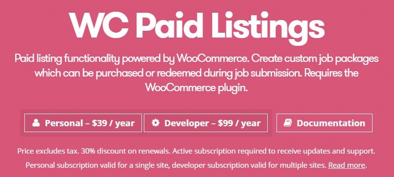 Paid listing functionality powered by WooCommerce. Create custom job packages which can be purchased or redeemed during job submission. Requires the WooCommerce plugin.